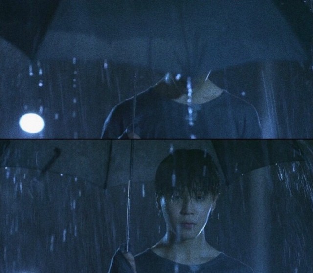 他就这样安静地站在那里为她撑伞......