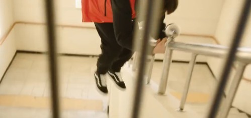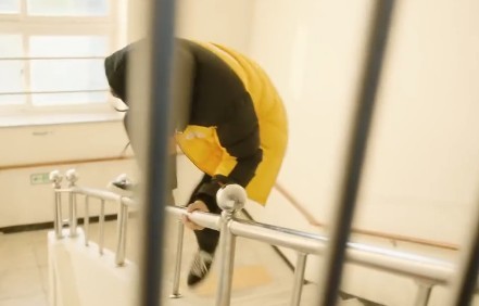 连准到了楼道口,飞身一跳