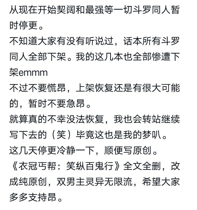 牧十七:嗯,影视同人我还是可以的,毕竟有文笔,写什么都行,尤其是综穿影视,我现在就写综穿影视和陈情令,动漫同人的话那得看阅文集团了
