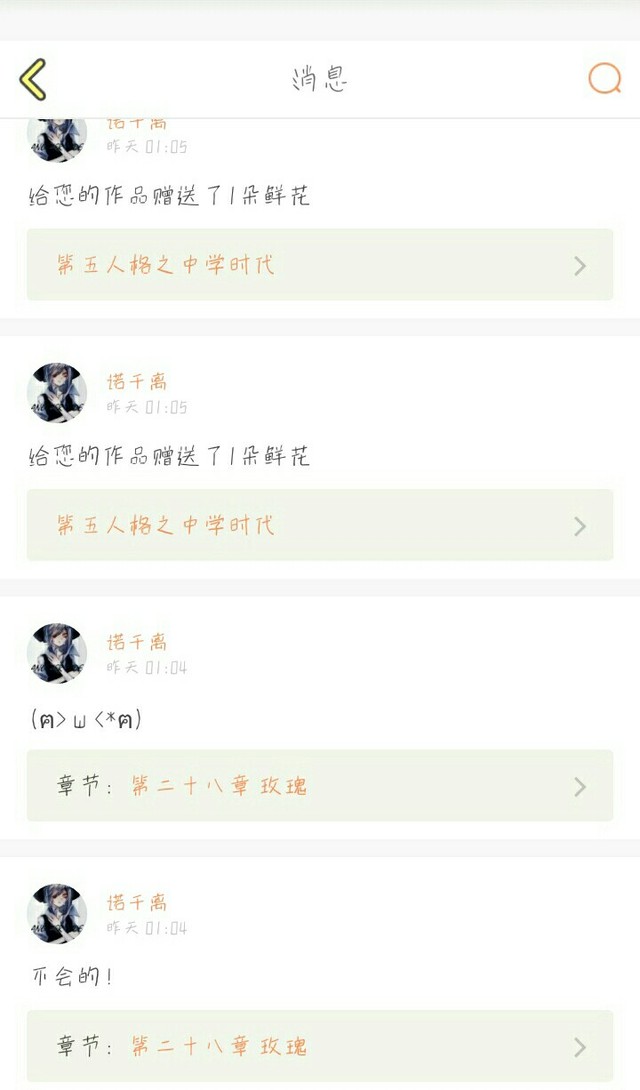 谢谢可爱的千离,不嫌弃我。
