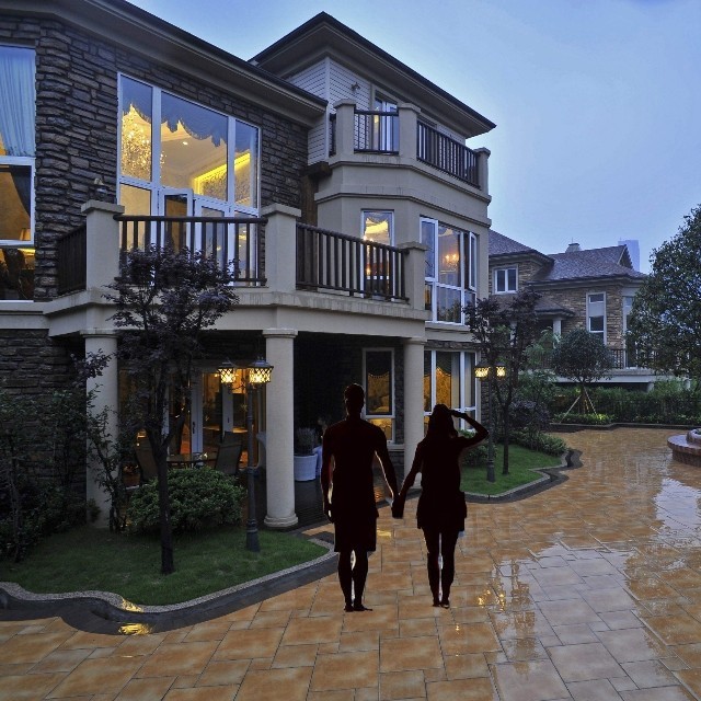 照片上的两个人亲密的手拉着手,往房子里走去。