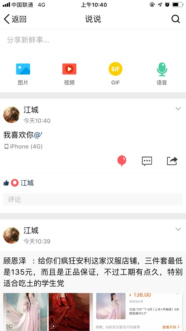 店长.阿悦2.发说说:我喜欢你(艾特一个异性)