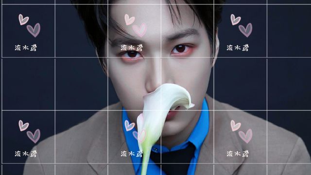 男人手里拿着一只百合花,轻轻抵在了唇间