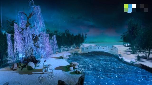 幽蓝湖面上散发着点点星光,湖面上立着彩虹桥,看向桥的那边可以眺望到一望无际的星空和湖面融为一体,风景极其美丽。池塘的两边有大小不一的礁石,可作休憩;礁石边有玉石桌椅,可饮酒品茶;桌椅边有一霓虹闪烁的琪树;琪树边上便是暗林,一望无际,幽深而静谧。