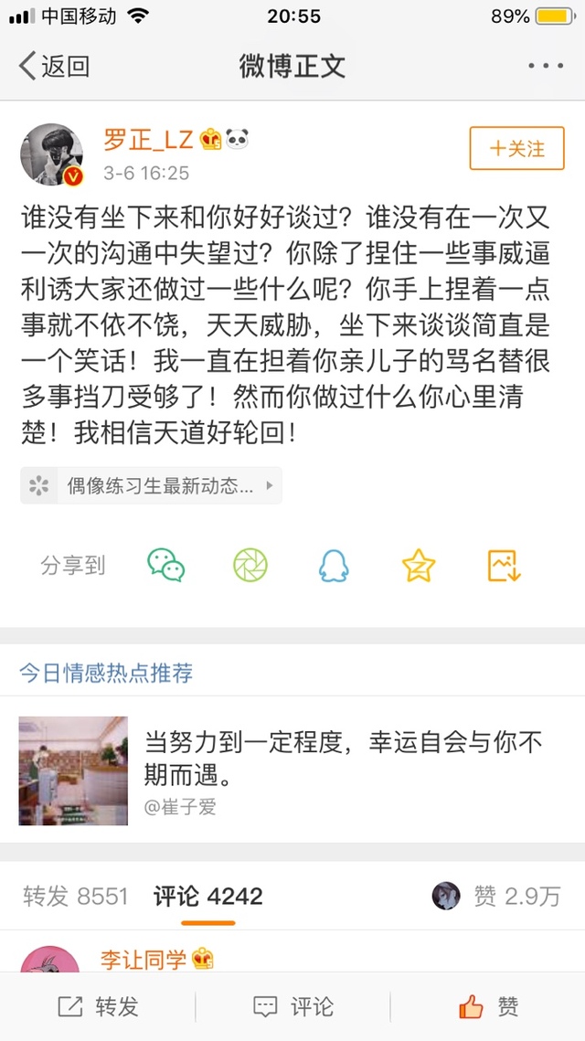 作者大大没过几小时,我们的栗子哥哥罗正就来发微博了