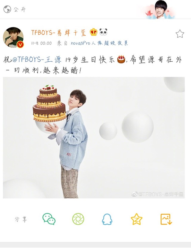TFBOYS另外两位成员一如往常地发微博生日祝福
