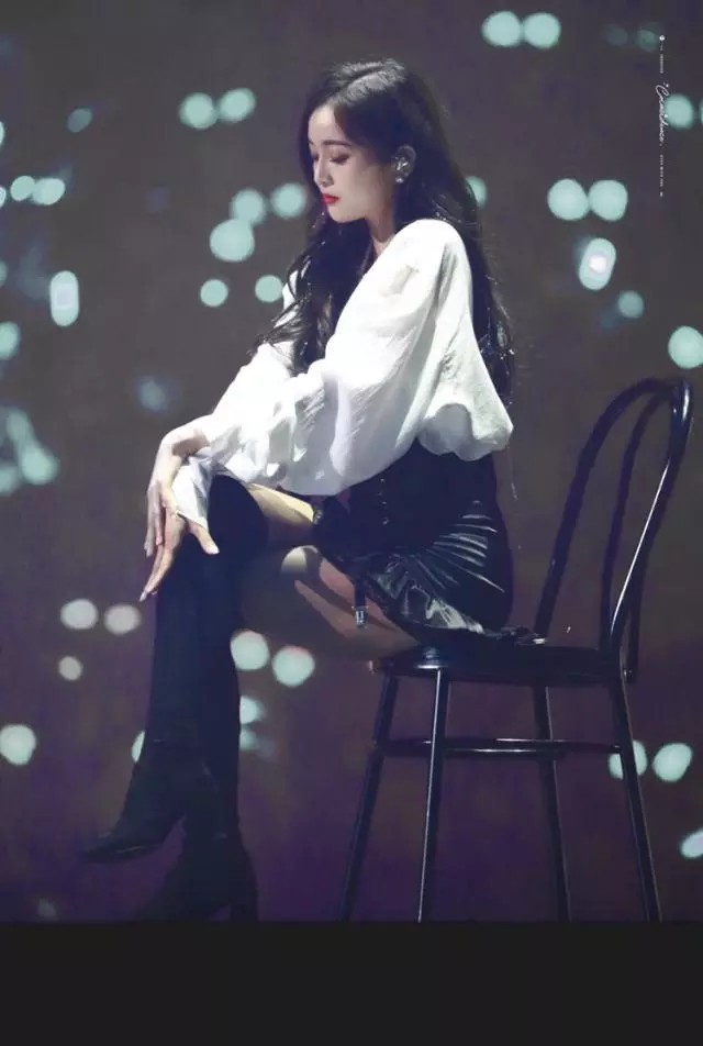 当灯光再一次亮起来时,安梦橙穿着一身黑色的性.感皮裙随意地坐在台子上