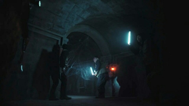 此时,盗贼先一步在墓中拿着手电筒探索...