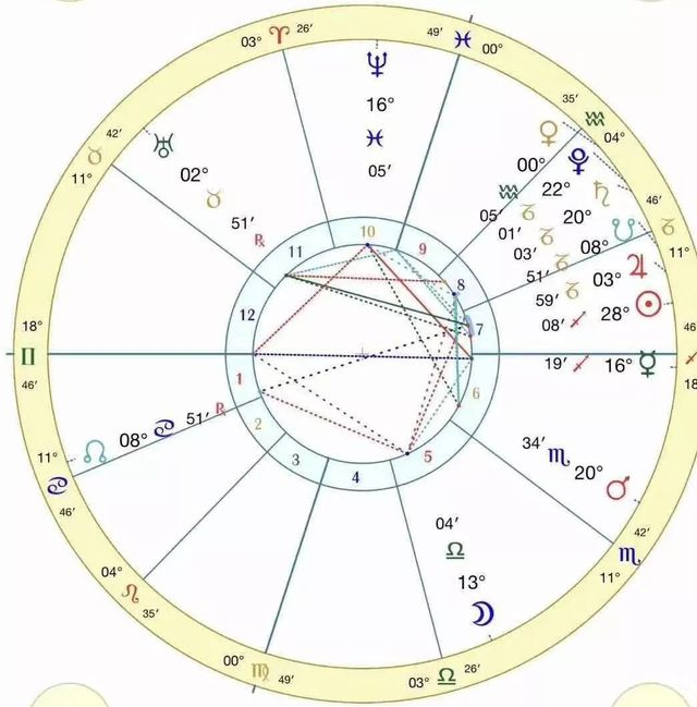鱼鱼糖球:“图片是网上随便下载的,图上从里到外分别是“宫位”,“行星位”,“星座位”,作者只了解这么多,其它的都不懂。”