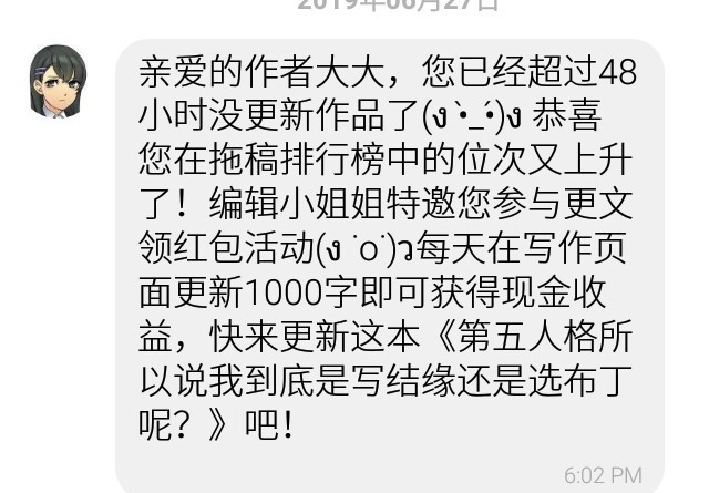 好的呢,我会努力拖稿的!