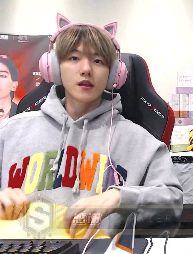 边伯贤摘下粉色的耳机,就冲这一点,他就爱死了这个地方,粉粉的还有小耳朵。