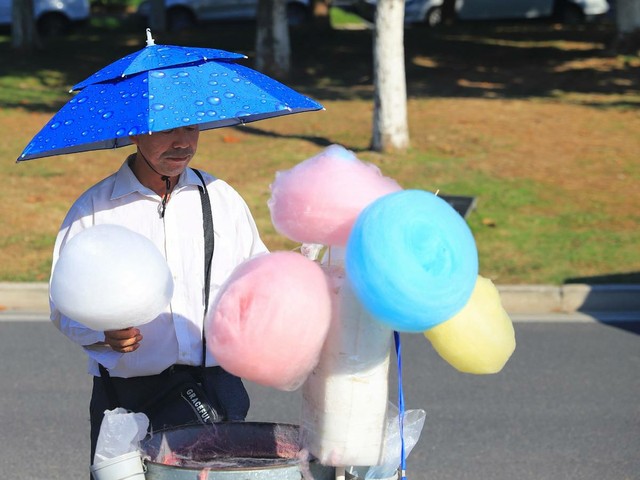 周静灵手里拿着棉花糖。