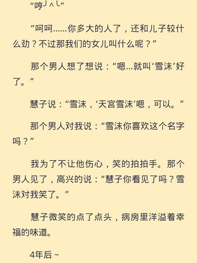 不过我再醒来时,我看见一个男人把我抱着,我伸出手时,猛然发现我变得和婴儿一样大小。