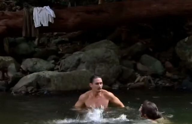 宛纳莎站在石头上四处看了看,才隐约看见那边树上挂着的衣服,也就是说他在洗澡了。