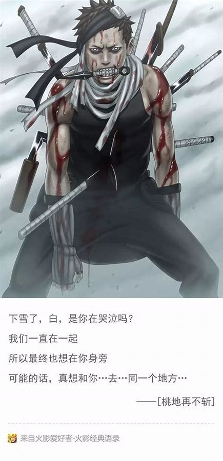 “让我来吧!旗木卡卡西!”桃地再不斩拦住了旗木卡卡西,他冲向那群武士,鲜血飞舞,不知何时,天空也下起了雪……