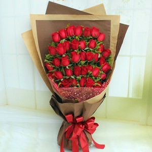 黄明昊捧着三十六朵玫瑰花【花语:我心属于你】来到了家里。