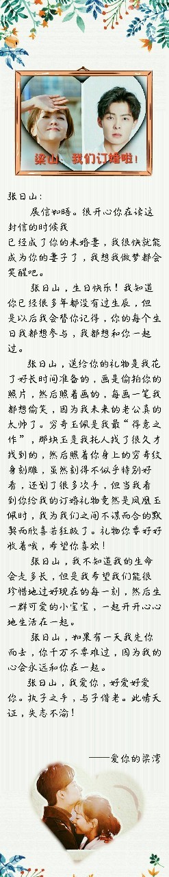 张日山,如果有一天我先你而去,你千万不要难过,因为我的心会永远和你在一起。