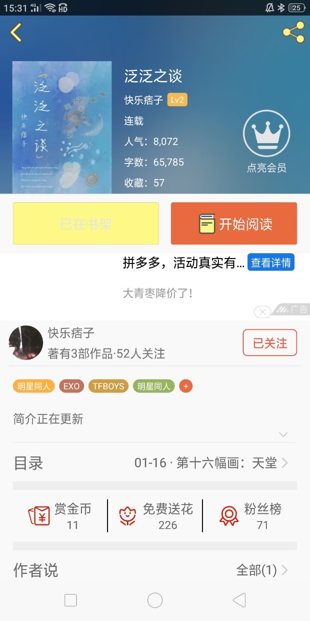 可以看看,一章是一部小说,每个分不同的