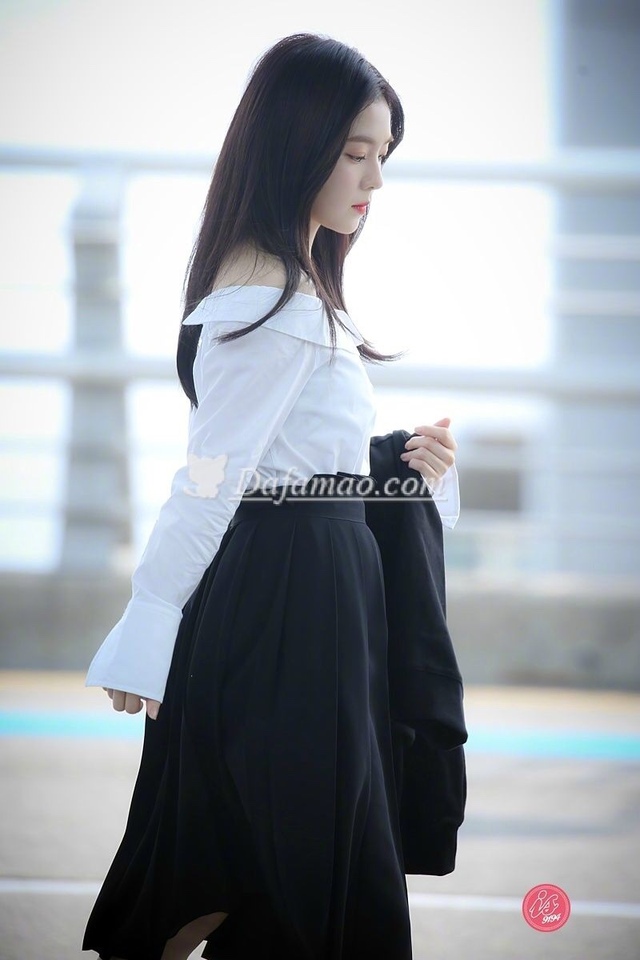 换上了一字肩的衬衣配上了一个高腰的西装裤,一个黑色中长款外套,个人干净整洁干练的样子。