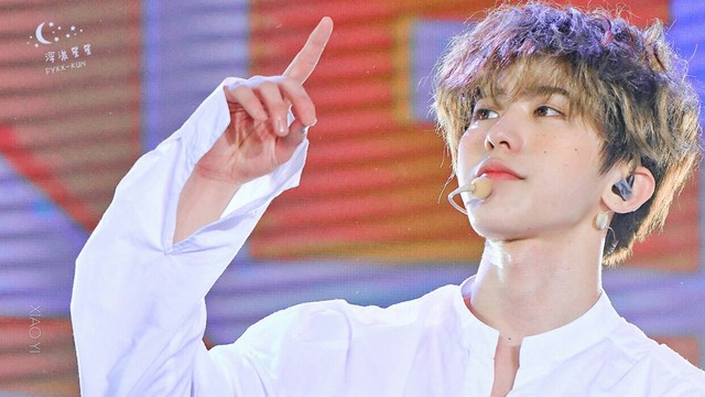 蔡徐坤双手交叉地护在胸前