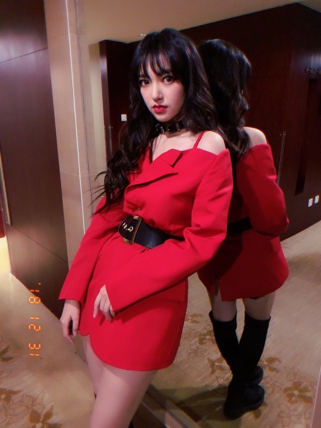 红色的裙子简单大气,将她的身材完美的衬托出来,显得十分高挑,微微裸露在空气中的香肩,白皙而又充满了诱惑力,黑色的腰带,更显得这件礼服将李若离衬托的精致与美丽。