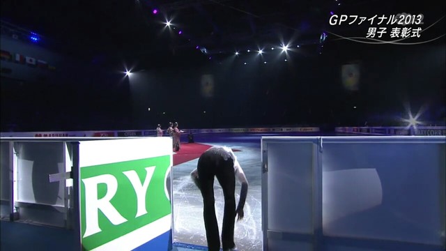 稍后进行的表彰仪式上,他像往常一样双手摸冰后上场,这是他对冰场最诚挚的爱。