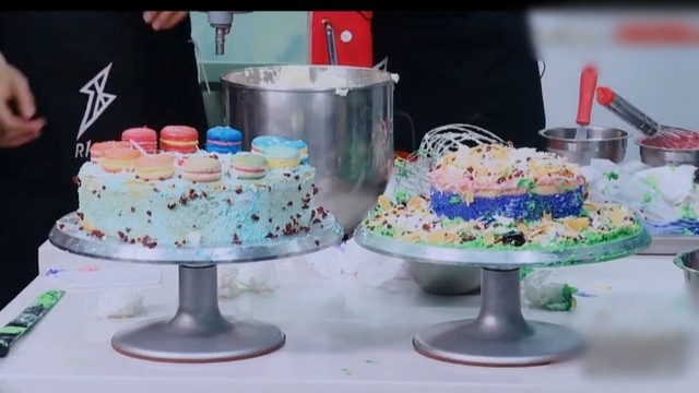 通过一系列的成员们的合作,两个蛋糕都完成了。