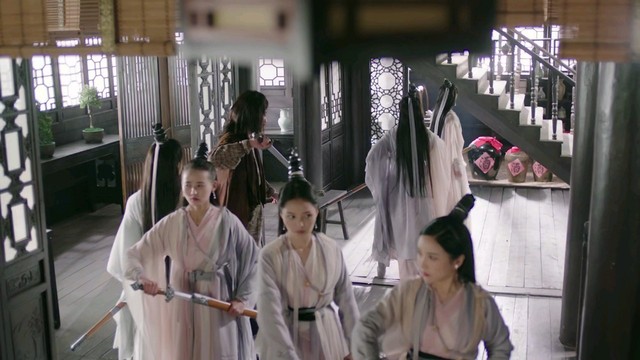 峨眉弟子们眼见自己师父落了下风,纷纷娇叱着上前帮忙却不料被杨逍的掌风扫到了一边