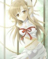 她不断的反抗着,想要挣脱铁链,可是根本不可能挣脱,
