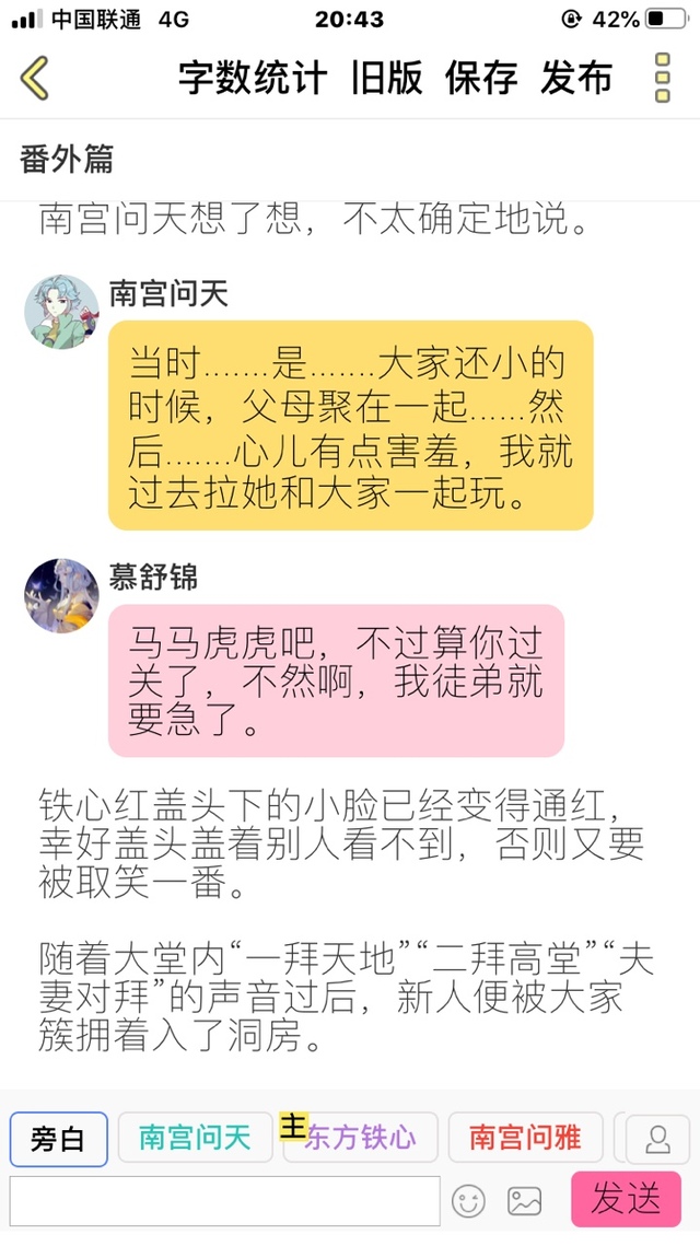 辞悠(作者)前天更完番外篇天心大婚的场景,突然想更一下洞房花烛夜的时候。虽然大大说过正文更,但是感觉写一半的话不太好。