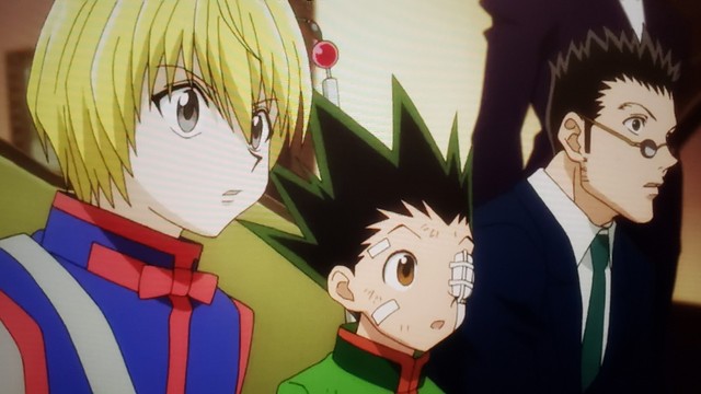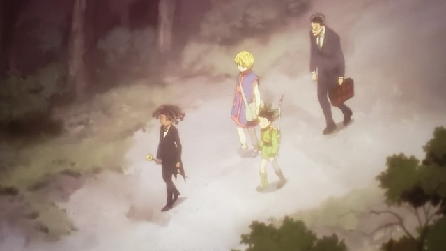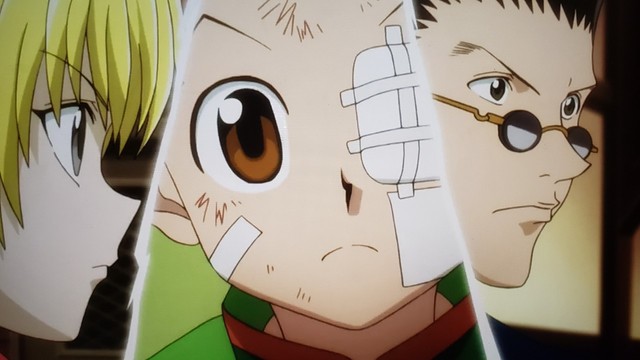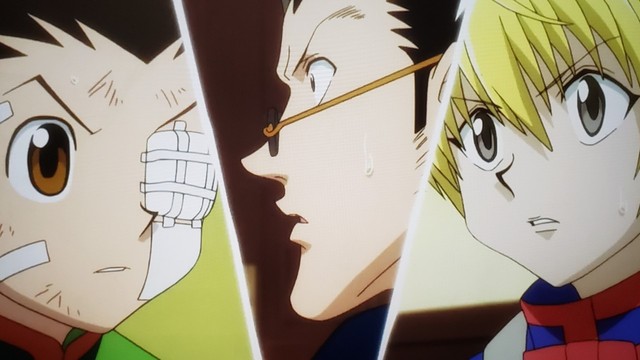 小杰 露娜 奇犽与酷拉皮卡和雷欧力分别并约定在友克鑫市再聚首~三人携手迈向新的舞台--天空竞技场