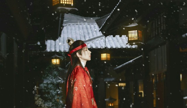 女子一身红衣似火,头发随风飘散着,一把红色的扇子执于手中,整个人看起来邪魅万分。