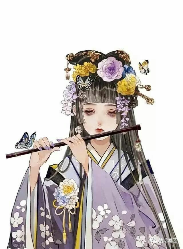 这时走来了一位紫衣女子,一头青丝,被一个紫带系着