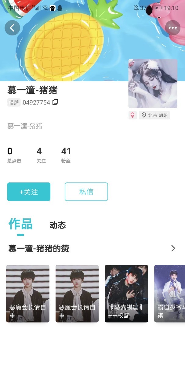 此图为今天我的粉丝名称,慕一潼-猪猪 是我的话本名称