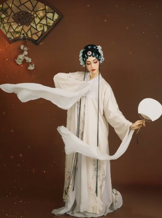 “登登呛”随着细密的锣鼓声,云锣声响起,许知便轻移莲步上台,谨然有致,步子不出丝毫差错,大小云手翻飞,水袖轻舞,唱腔优雅甜润,像是一捧水,伸手就能掬了去。