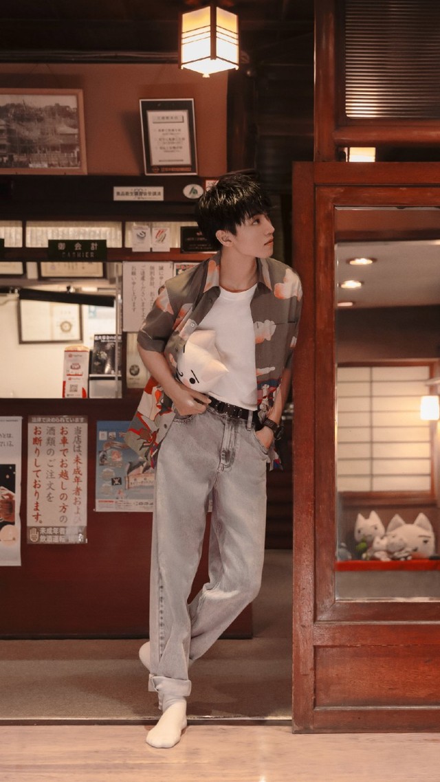 王俊凯似乎察觉到了吴世熙的心不在焉,也便在一家日式书店附近停了下来,靠在门框上看着她。