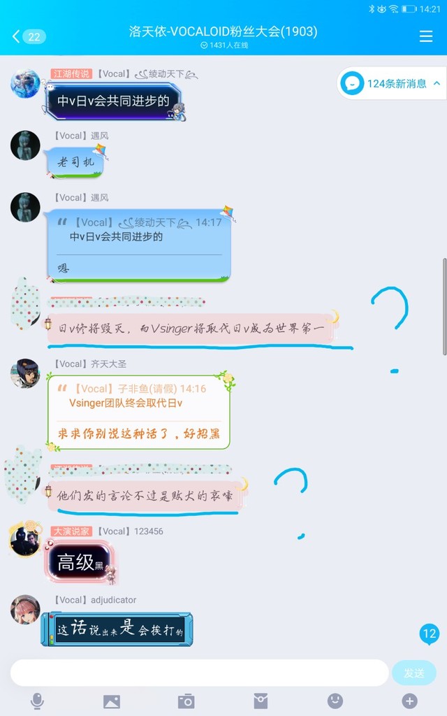 泠草另外就是这个消息在初音未来-VOCALOID粉丝大会还有洛天依-VOCALOID粉丝大会这两个群里也在讨论,就在这时出现了个闹事的,截图献上。我觉得我给他打码已经很仁慈了