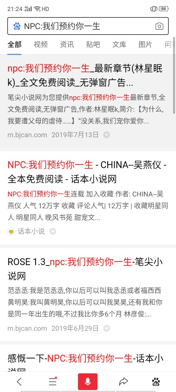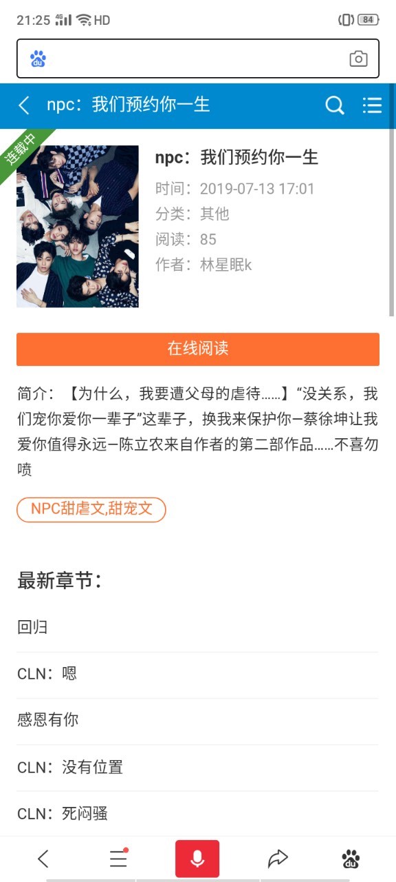 橘子本橘今天在百度搜了一下我的《NPC:预约》
