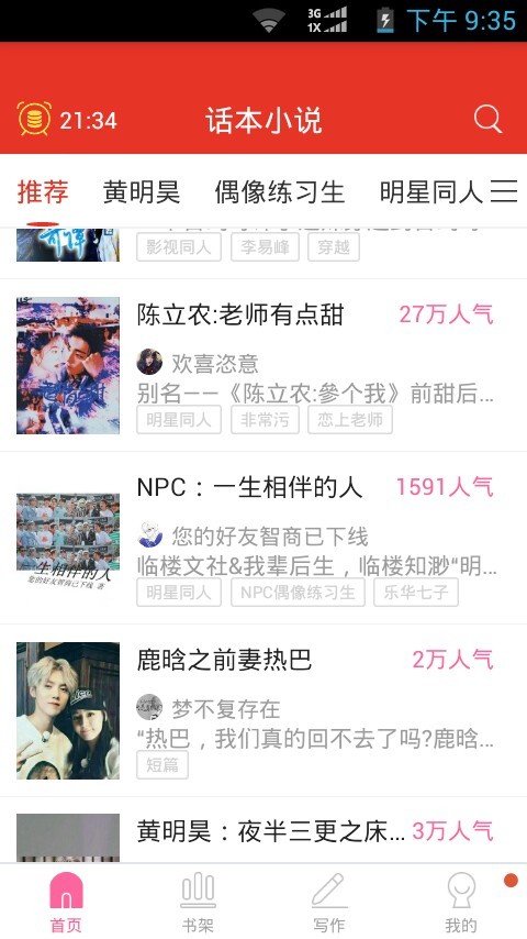 你们的作者大大吼吼吼,昨天看到我的小说又上首推了,开心。