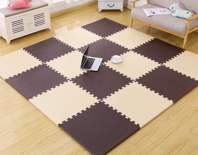由于昨天安迪和辫儿哥哥在地上玩玩具虽然说地上有地毯但是师娘还是觉得凉就铺上了这个垫子,由于时间太晚了就拆开一摞放地上