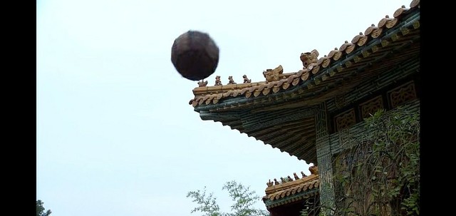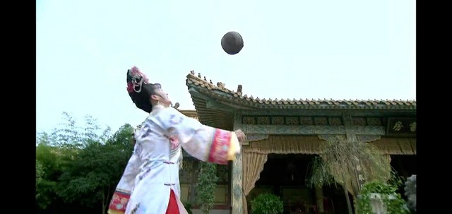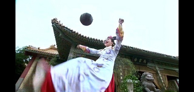 就在这几个人玩得正嗨的时候,还珠格格把球用力一踢,球就往皇上的方向飞去