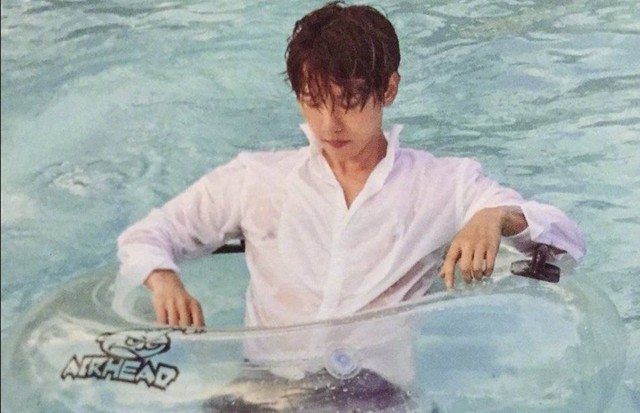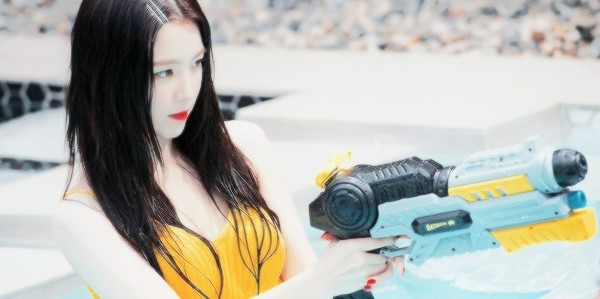 伯贤从泳圈上跳了下来,感觉到了秀荣那边的水停了就一手挡住楚伊那呲来的水往她那走去。