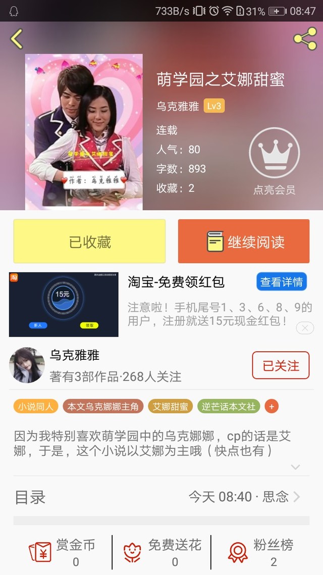 作者霖霖名字叫《萌学园之艾娜甜蜜》