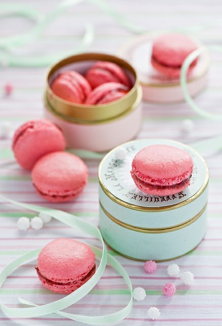 冰冰一份草莓蛋糕和马卡龙。