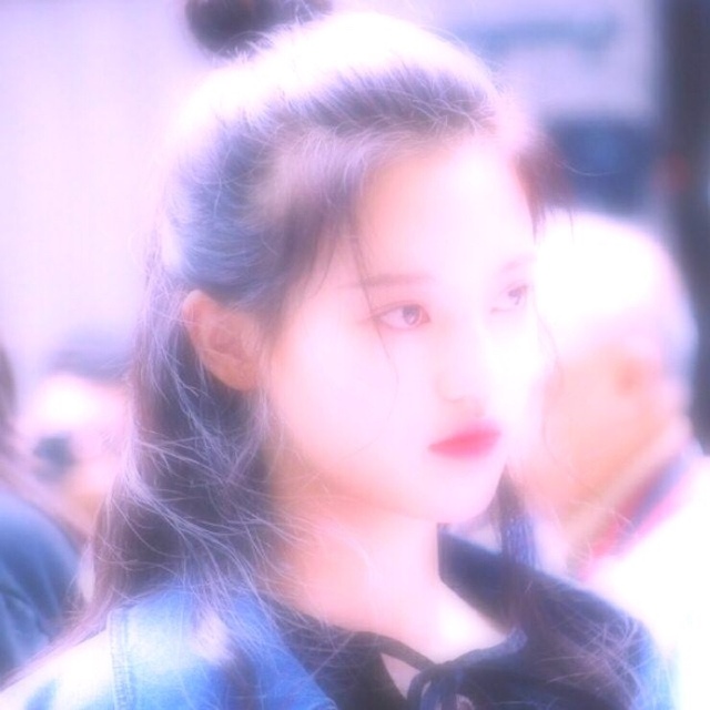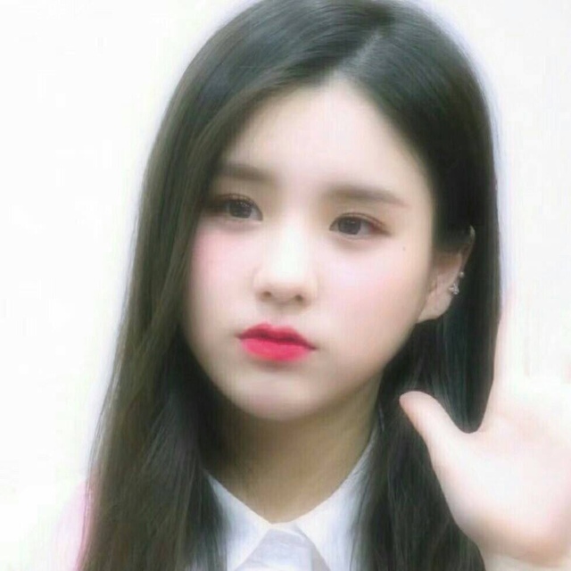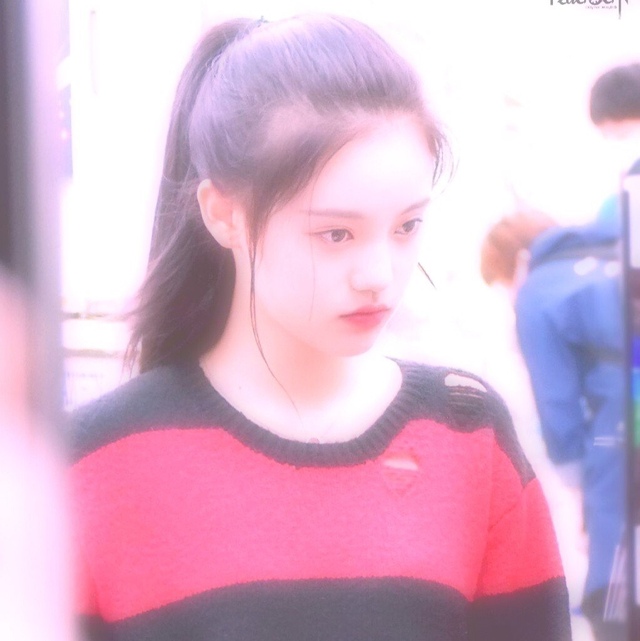 放下两撮头发,半低头以确保看起来足够可爱娇柔.