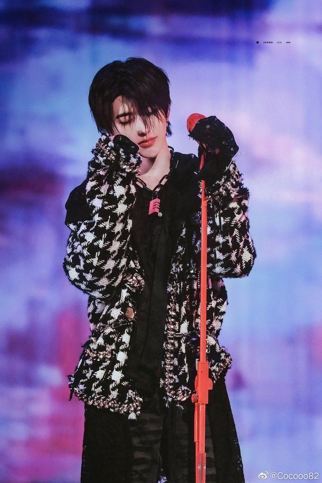 音乐响起,红色外套里的内衬隐隐有些透视效果,随着蔡徐坤的舞动,而若隐若现.