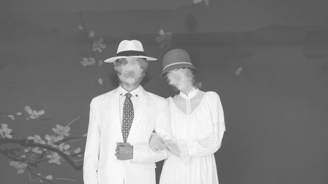 女子十分亲密地搂着身边的男子,脸上洋溢着幸福的笑容,可是男子脸上只是冷漠严肃的表情,真是毁了这么完美的结婚照,我心里感叹着