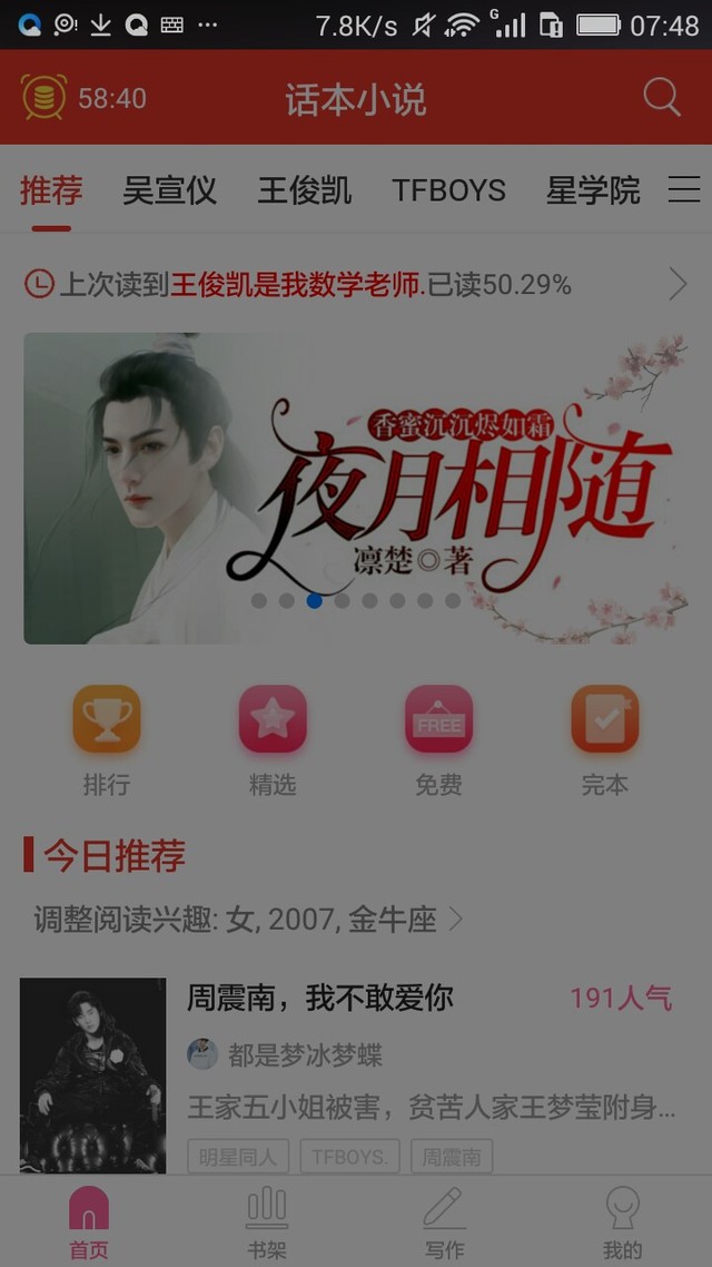 王爸最近你们班里转来两个学生,一个叫周震南,一个叫吴宣仪,他们两个学习都很好,甚至比你还好,所以,你要加把劲啊,可不能让他们两个超了你啊,千万不能刷新你的记录啊