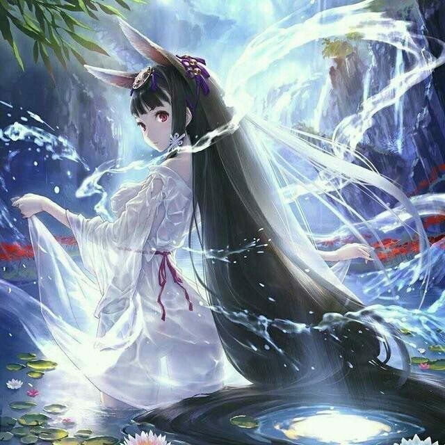 一位狐狸耳满身雪白穿着一袭雪白古装裙没有一丝灰尘一头黑发如瀑布披散开来样貌犹如神仙的少女从一道白色大门中走出来