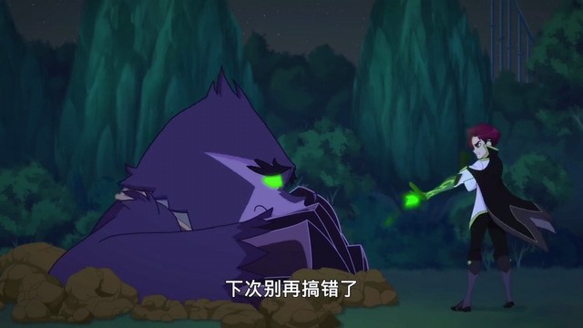 梦洁用自己的希瑞魔杖发岀一束蓝色的光芒紫毛鼠鼹被击倒地上